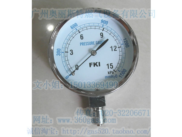0-15kpa微压表,奥丽斯特现货批发FKI压力表