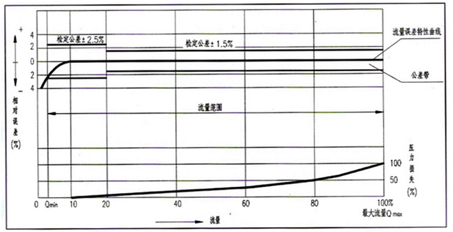 LLQ系列气体腰轮流量计具有容积式气体流量计的典型误差曲线和压力损失曲线,详见下图: |